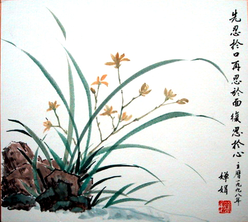 樂媽媽的國畫畫的非常好,尤其擅長山水。中國山水畫首重佈局,也就是要構思畫裡的意境及寓意,再填上詩詞、佳句就更容易彰顯畫中的情趣。
