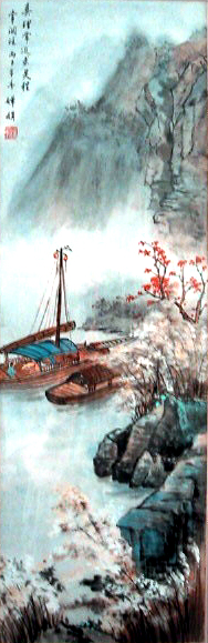 【真理常追求,靈魂常潤注】一江煙水照晴嵐。兩葉小舟,秀麗的景色,傳達著造物主與人們心靈的契合。