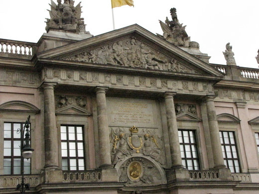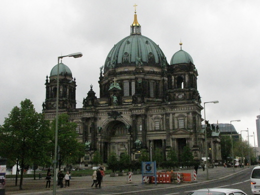 五月三日我們下榻柏林NH BERLIN-MITTE。大家約了2:30在樓下大廳會面,老公興奮的拿著GPS,急著想在晚餐前,先探索這歐洲最富活力的首都。當時天氣陰陰的,溫度十二度。出旅館左轉,到Grand Hotel右轉,到達Bebel platz 。站在宏偉的國家歌劇院前。我們一陣驚呼!這是建築設計師(Wenzeslaus)的經典創作,于1743年完成。伴隨著國家樂團及柏林管弦樂蓬勃發展。二次大戰期間曾遭破壞,但在1950年按照原設計修復。St.Hodwig’s Cathodral 1747年建造完成,是羅馬天主教在德國宗教改革後的第一座聖堂,有它特殊的意義。在廣場的西側,是old library。 其中最值得一提的就是─鋪設在廣場地面的一塊玻璃的紀念碑,經由玻璃可以清楚的看到地下一間空無一物的圖書館。1933年5月10日就在這廣場,納粹進行全國大規模的焚書運動。為了紀念這黑暗的日子,附近的扁牌寫著:(In the center of this square on the tenth of May 1933, National Socialist students burned the works of Hundreds of free authors,publishers,philosophers,and scientists.)。及德國詩人海涅的名言:在一個國家焚燒圖書,是焚燒人類的開始。旁邊是以書籍的形狀,豎了紀念盃。對街是Humboldt University,(愛因斯坦曾在這裡授課)這街上最引人入勝的是騎著馬的Frederick II of Prussia銅像,銅像下方是馬術騎兵隊。工藝精巧,令人讚嘆!隨著Unter den Linden的路標,來到國家歌劇院、歷史博物館、柏林大教堂。柏林大教堂,是德國最大的教堂,我們到的時間教堂門庭深鎖,很可惜沒有辦法進去。過了宮殿橋,開始下雨,大家決定返回旅館,準備參加晚上的Welcome dinner。