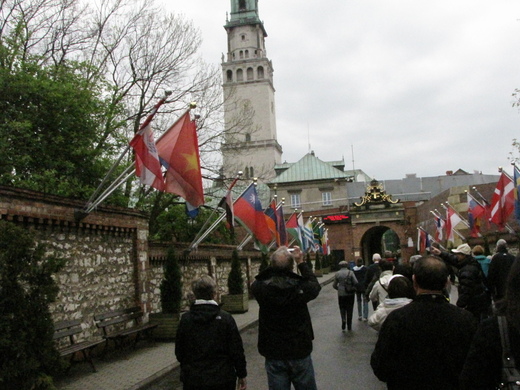 五月七日一早離開Warsaw,上午主要的行程是參觀波蘭最有名的聖母Black Madonna 的所在地,Jasna Gora光明山修道院。大門前是各國的國旗,我們看到青天白日滿地紅的國旗,好高興!