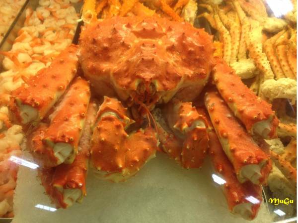 最叫我窩心的是,三不五時他還會出其不意的推出很希罕的海鮮。對於我這種連蛇蠍都吃的怪獸,很能滿足我的好奇心。有一次,我以一百元的代價,買了一隻「完整」連殼帶全身的阿拉斯加帝王蟹,為某人慶生。那是一項終生難忘的回憶。在那之前,吃帝王蟹但見大腿和局部身體,從沒見過全身的模樣。