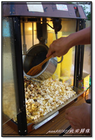 十八拉生意最好大家都愛吃香腸,棉花糖當機了而我們的爆米花爆一鍋就可以裝滿好多杯了!因為還有很多人還沒來所以攤前冷清啊,主辦單位只好拿著大聲公喊著新鮮的爆米花剛出爐的喲~好吃到連路人甲乙都要買(不好意思我們這不賣的)。