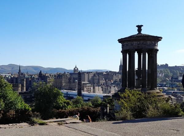 由卡爾頓山遠眺,照片中央冠型鏤空的尖頂為聖吉爾斯教堂。