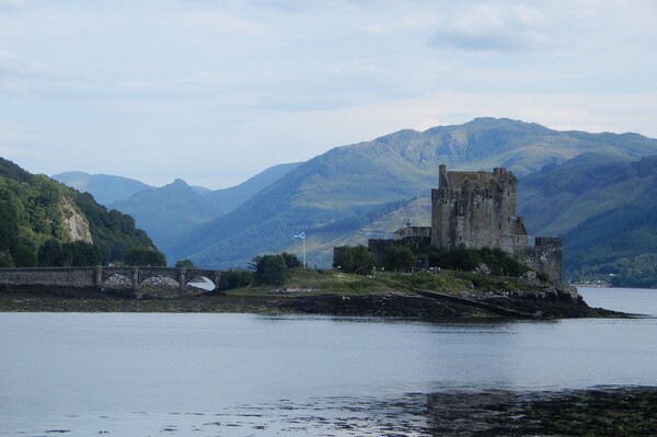 Eilean Donan Castle 這張圖片曾經是我電腦的桌布近十年,圖片右下有我的匿稱,二十幾年前自紅極一時的網站Webshot下載了上千張的風景圖片,選它的原因很簡單〜畫面沉靜不刺眼。艾琳多南堡每天開機就映入眼簾,卻不曾想過會有機會去造訪,這次與老婆商量去英國,主因亦非為了去參觀它,只不過是去斯凱島Skye 的順路景點。