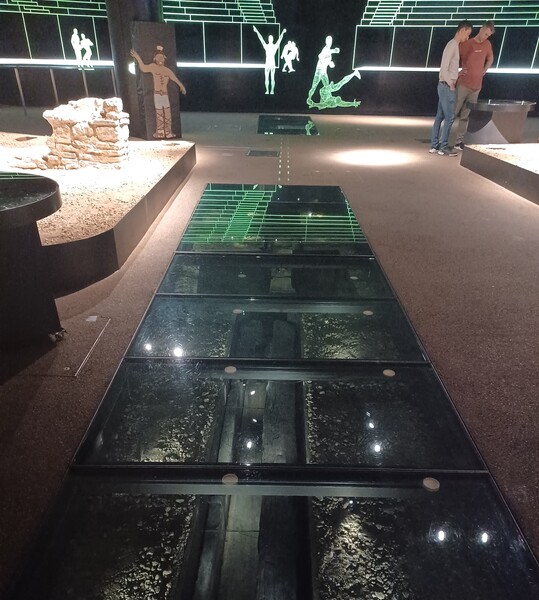 市政廳美術館地下的羅馬圓形劇場,有早期民房的木結構遺跡。