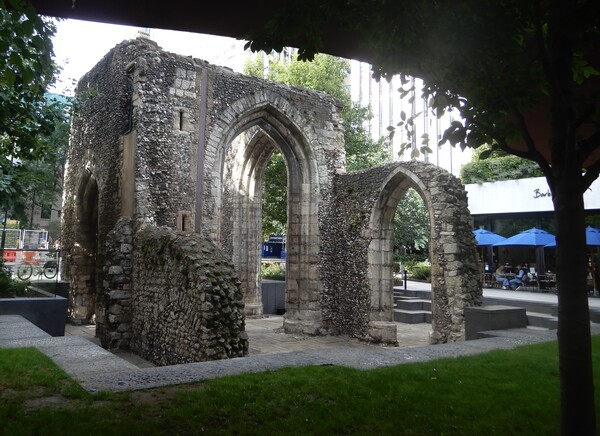 康威、約克、切斯特牆體比較完整,均可爬上城牆參觀,後兩者牆高約僅二層樓,估計任何宵小都能輕易越過。倫敦市牆是行程最後一天早上去London Wall道路附近參觀的,牆體離落散佈在現代建築物的綠地當中,有夠滄桑,不過雖然殘破仍吐露了它的前世今生,是城市歷史的見證。另一段可觀的牆體在倫敦塔北側,稍遠沒去,不巧的是,也在附近的倫敦市博物館已關閉,預定2026在史密斯菲爾德重新開館,所以就逛到舊市政廳廣場,之後因上廁所進了美術館,館員介紹說地下層有羅馬圓形劇場遺跡,哈,額外的參觀收穫。
