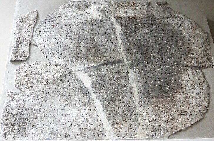 <尼姆魯德宮殿的門板>,記述亞述國王提格拉特毗列色三世的豐功偉績。楔形文字很像是用鐵釘組合起來的符號,一般人看起來簡直是火星文,對解讀者是極艱難的挑戰。