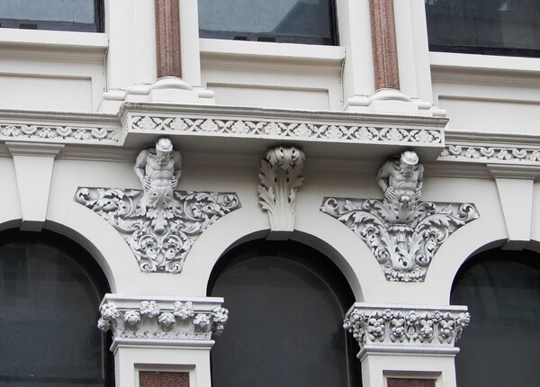 歐洲有女像柱,也有男像柱(Atlas),源自希臘神話中被懲罰的天神阿特拉斯用肩膀支撐天空,所以男像柱的造型通常表現為用肩背或雙手支撐重物的姿態。遊英時在格拉斯哥大街上就看到好幾處男像柱,後來在倫敦艦隊街也看到二個,當時覺得很有趣,這不就類似台灣廟宇的憨番扛廟角嗎(台南寺廟尤多)?