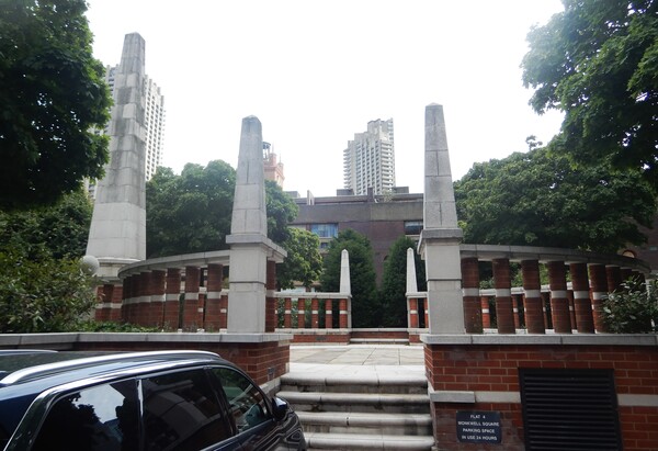 倫敦巴比肯Monkwell Square,小廣場中一大支,兩個入口各二小支方尖碑。