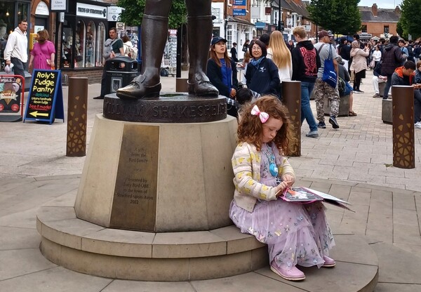 十一、史特拉福,這個漂亮小女孩坐在莎士比亞的雕像下認真學習,將來會是繼喬安娜·羅琳(哈利波特作者) 之後的大作家?
