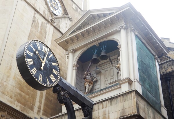 十六、倫敦艦隊街, ST Dunstan in the West 教堂時鐘,兩個半身赤裸的巨人Gog和Magog 整點時會敲鐘。