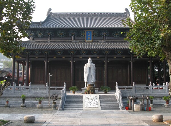 之前去大陸騎單車自由行主要看古村與老街,順便也參觀了幾間博物館和孔廟。唐貞觀時期下令「州縣皆立孔子廟」,此後歷代王朝亦推崇孔子,故孔廟遍布全國各地,近代因戰亂或都市化受到摧殘,但仍有不少留存下來,不過我看過的孔廟大多不完整,前半部的泮池櫺星門不見了,只剩大成殿,如太原、福州、漳州、池州,前半部拆除的原因很多,有的被改建住房,有的拓寬為道路,也有改做學校或倉庫等等。