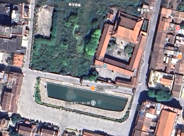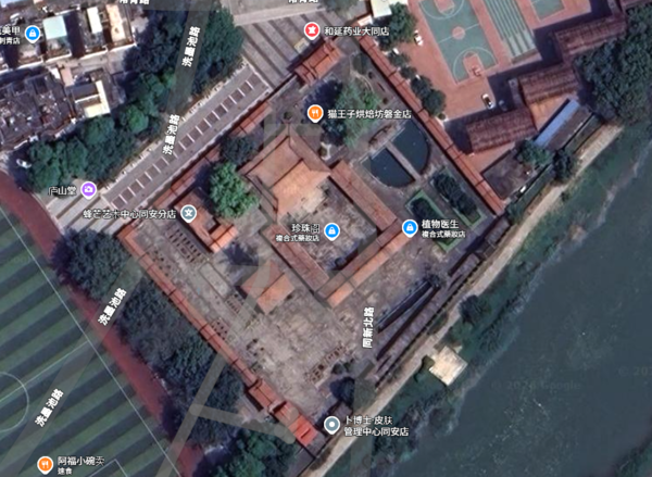漳州文廟,拆除門前一大片民房,整出一個不倫不類的大水池。