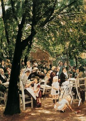 他們不把這裏叫"伊甸 Garden of Eden",而稱之為 "Biergarten"! 到謬尼赫(台灣譯名:慕尼黑) 没去這些 Biergarten 泡他個一天一夜啊.....就等於白去啦! 附圖: 謬尼赫新美術館- 德國印象派 Max Liebermann 筆下的謬尼赫"啤酒園"
