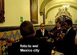 我們上回在墨西哥用餐的餐廳多是當地人去的餐廳,有些樂團為了我們觀光客,雖然也會配合性地彈唱几曲 »標準曲 »,但是在我們跟著Ay ya ya ya 几聲,他們小費到手之後,就多會和圍繞在其他餐桌邊,對著用餐的女仕來曲深情款款的情歌,或是對著舉杯相邀的男仕來個歡樂大唱和,讓我們見識到這些墨西哥樂人在酒菜之間,縱情歡唱,賺錢不賺錢....es poco importante ! (管他的 !)的自在和豪邁 !