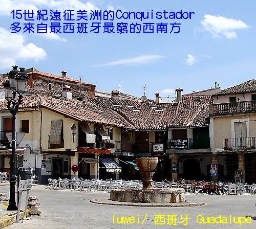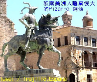 我走過西班牙那個河頭省(Extremadura - 現在應叫自治區)几回,到現在還是一片窮相,城裏没什麼商家不說,城外的田裏也看不到什麼莊稼! 就連南西班牙常看到的主要經濟作物 -橄欖園也都没。現在遊覽曾經出過最多”征夫”(Conquistador – 我帶批判些的翻譯是遠征土匪)大將的楚希久(Trujillo)小鎮,還可以看到几個他們衣錦榮歸之後所修建的豪宅,如Palacio de la Conquista 和 Palacio Orellana y Pizarro 等,很難想像在15世紀之前,小鎮廣場上除了教堂,就只有比馬雅、印加文明還差一大截的破爛房子的樣子。