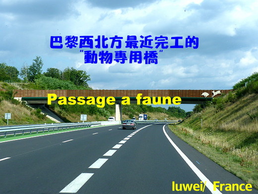 這几張照片是我在法國高速公路上拍的,法國人稱作 « passage à faune »,我譯作 [動物專用橋],顧名思譯,是一座跨越高速公路,重新連接一片森林地區的橋樑。這種橋法國人從60年代就開始構思,但要到70年代才開始建造,因為60年代法國全國的高速公路也只有2大條 : 從巴黎經過里昂通馬賽;還1條往北,經Lille通比利時。大部分的法國人以為野生動物仍享有的廣大空間,法國的自然環境也還不錯,而必須和野生動物爭地盤的農民,就更反對 [生態走廊] 的設立了。我記得當年在法國西南部待過的農場老板,和他可以談戲劇,談歷史,談賽車,談做菜......bref, tout sauf l’ecolo無所不談就是不能談(環保)話題。