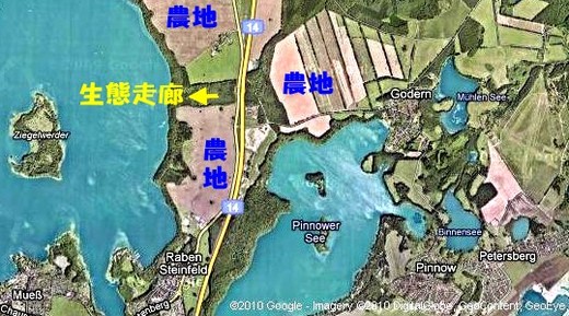 註 : 地圖是我利用 Google map 找到的,今年八月在北德地區經過的一座[動物專用橋],德國人稱作 Grünbrucken (綠橋)。