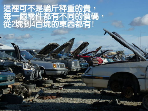 好好玩的地方喔!雖然我不會拆車子,但是光是看奇形怪狀的零件也很好玩呀!這若是讓搞立體創作的人挑材料,應該可以弄出點名堂。是啊! 世界各地很多人已經在弄了, 我倒是想和我二哥退休後搞個真正的"汽車旅館",不對! 應該叫汽車墳場旅館...嗯不好聽,就叫"車陣旅館" ......呵呵,不要想太多!