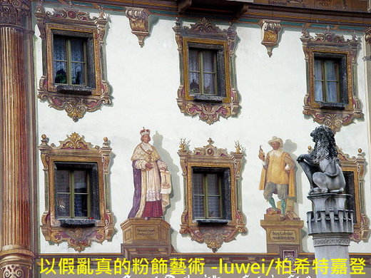 上還有不少變化。簡單的說,(濕)壁畫成了中歐那些嚮往古代帝王崇高,又羨慕京府廟堂華麗,但卻用不起真材實料,擺不起高檔雕刻的老闆粉飾門面的最佳方式。 沒錯 ! 歐洲(巴洛克)粉飾藝術 -姑且通稱為濕壁畫 - 的興起有點像現代人搞山寨版,本是搭虛配實,以假亂真,從比例、線條、色彩甚至光影裡,去虛擬世界,模仿自然。創造出真的也是假的,假的也終會成真。法文trompe-l'œil(騙你眼睛)可說是一針見血的說明。