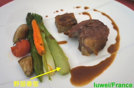 野茴香莖(法文 les Bulbes du fenouil sauvage)因為季節性強,收割也不是那麼容易,以前自己莊園裡每年春天上桌,最多也吃個2、3回,從來沒指望在飯館裡吃。這回旅遊南法,不期在Muse hotel 的餐廳碰到,而且不是配魚,而是配小羊脊肉和羊肩,讓我既沉醉於少年時光的美好回憶,也驚艷於主廚簡單而巧妙的搭配: 三種當季的綠色植物,綠蘆筍頭、小葱、野茴香莖。 原鄉的原味,原味的原香!
