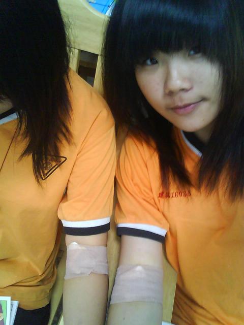 先滴一滴血到藍色液體,沉下去才可以捐喔!