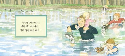 邁克.羅森(Michael Rosen)是一位詩人,也是一位劇作家。他把這首傳統的野營歌,改編成以韻文朗詩呈現的故事內容。故事中押韻、重複的語句,讓孩子可以很容易的跟著文字的節奏一起朗誦;擬聲詞的運用,也讓孩子彷彿聽到大自然的聲音,隨著故事進入一幕幕冒險的情境中。