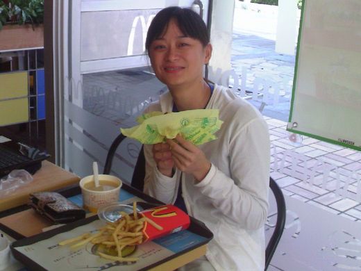 不知是不是餓昏,大家點咖啡,她卻點漢堡套餐,
