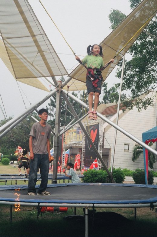 最後,二位女兒還挑戰了高空彈跳