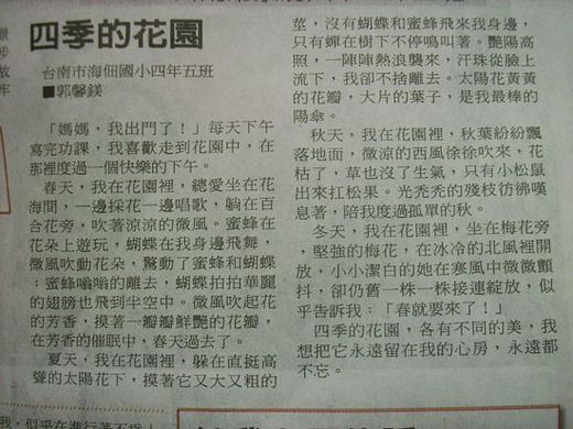四個月後,又接到報社的通知,小女兒的文章《四季的花園》將刊登在