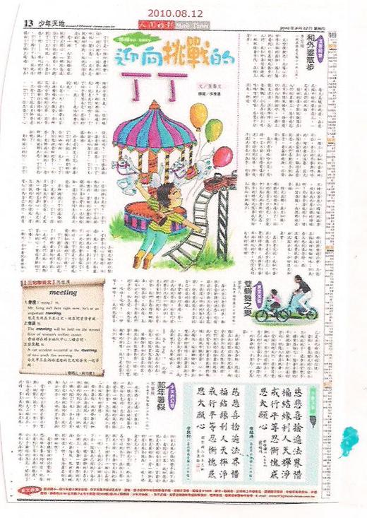【馨鎂作文】那年暑假~刊登在2010/08/12人間福報少年天地版