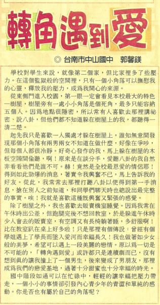 【小女兒】轉角遇到愛 ~刊登在2013/07/25台灣時報