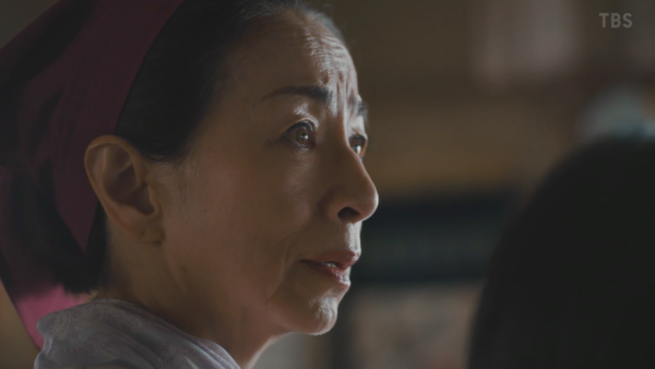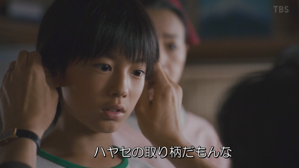 早瀨見到才差點被合六手下綁架的兒子,即使驚魂未定,仍按捺住內心的恐懼拚命安慰奶奶,忍不住上前拉住他的耳朵,含淚微笑著跟他說: