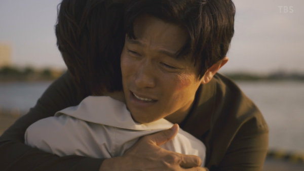 拓海跟早瀨母聞言,驚覺眼前這人很可能就是朝思暮想的父親/兒子,早瀨母一臉不敢置信,拓海則瞪大眼,兩行淚默默流下雙頰,這一幕就讓我跟著淚流滿面。