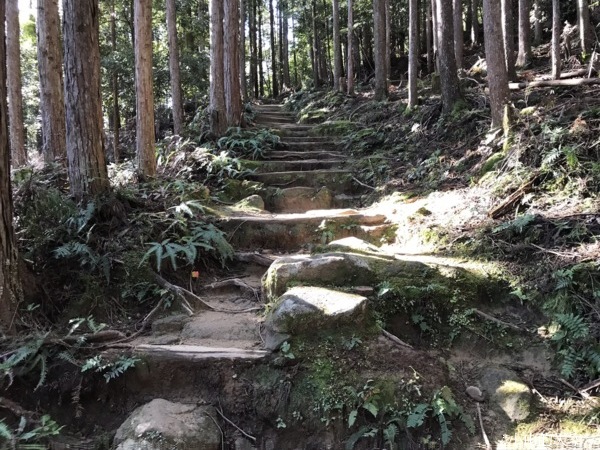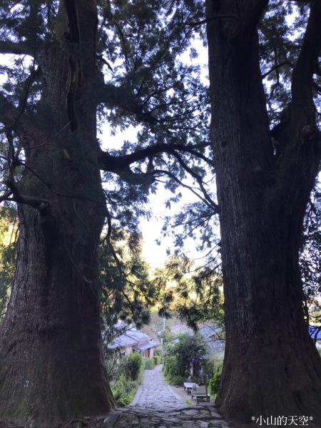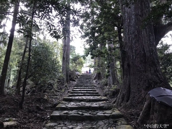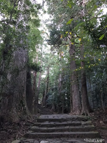 穿過巨大的「夫妻杉」,走進兩旁都是杉並木、高低不一的石階道。