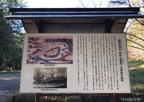 「大齋原」-「熊野本宮大社」舊社,至江戸時代為止,還沒有建橋樑,到這裡參拜便要步行過河,1889年因洪水淹沒及沖走了大部份社內的大小神社等建築物,其後於距離約500M的位置,建成了現在的「熊野本宮大社」。