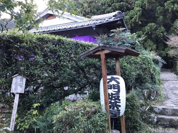 「大門坂茶屋」-售賣紀念品,及提供租借平安時代服飾,在「夫妻杉」前拍照留念。