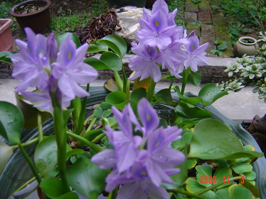 一整片的布袋蓮 點綴紫色的花 很美 只不過擋住了水流 居民和官方都欲除之而後快 我在三重的圳溝和台南虎頭埤都見過 惹人憐愛 卻被殘害 也會阻礙人類的生活 真矛盾 - 6樓. 苗藻2008/11/12 18:490.0