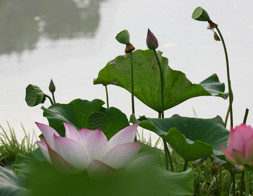 綠波游魚戲水間,一枝獨秀綻芳妍;