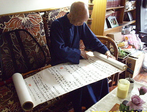 送來周佬風采 展讀詩軸一幅照片