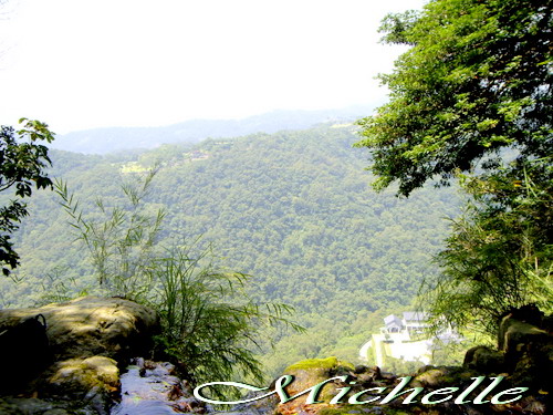 但因懸崖旁並無欄杆,且聽說幾年前曾有大學生一沒注意,腳底一滑掉到瀑布底,所以領隊很小心的叮嚀,要人不要太靠近懸崖。要看下方,領隊一手拉著我,要我兩手抱著懸崖旁的一棵樹幹!只能頭探出去看在下方平台觀瀑布的人!