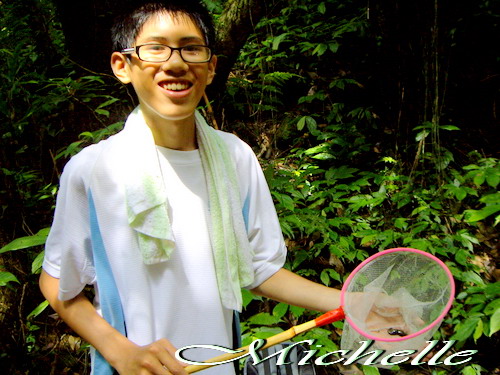 因這次有準備了泡麵,那領隊也煮了水!所以叫兒子先吃完東西再下水。兒子吃完跟其他的小朋友借了隻撈魚的網子,又下水去撈!這才發現溪裏的蝦子還不少咧!而且每尾蝦都大約有4cm那麼大咧!兒子還算有點保育觀念,問他要不要把蝦子煮來吃!他堅決的說要放回溪底,不過還是先去跟人炫耀了下,要回家的時候才把蝦子再放回溪底...