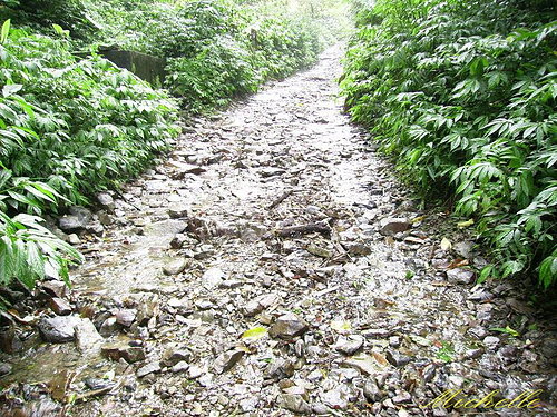 事實上,說實在這條路還算好走,若遇到叉路跟著前人的指標走就對了。來到一個三叉路口,雖有看到指標,但感覺上卻是最荒蕪的一條路,因為茫草把整個路徑擋到了.....還好今天出門時有帶了把鏈刀,要不可能會傷痕累累嘍........
