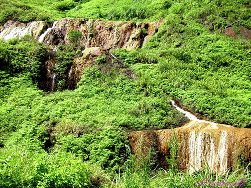 之前去了幾次九份主要都是去逛老街,所以從沒注意到黃金瀑布,今早7點出發走台2線往北,一直看到往時雨中學的指標左轉走北34線就可看到黃色石頭的溪水,再順著路走,剛好太陽愈來愈大,哇~那石頭真的是閃閃發亮。