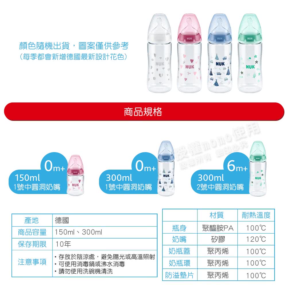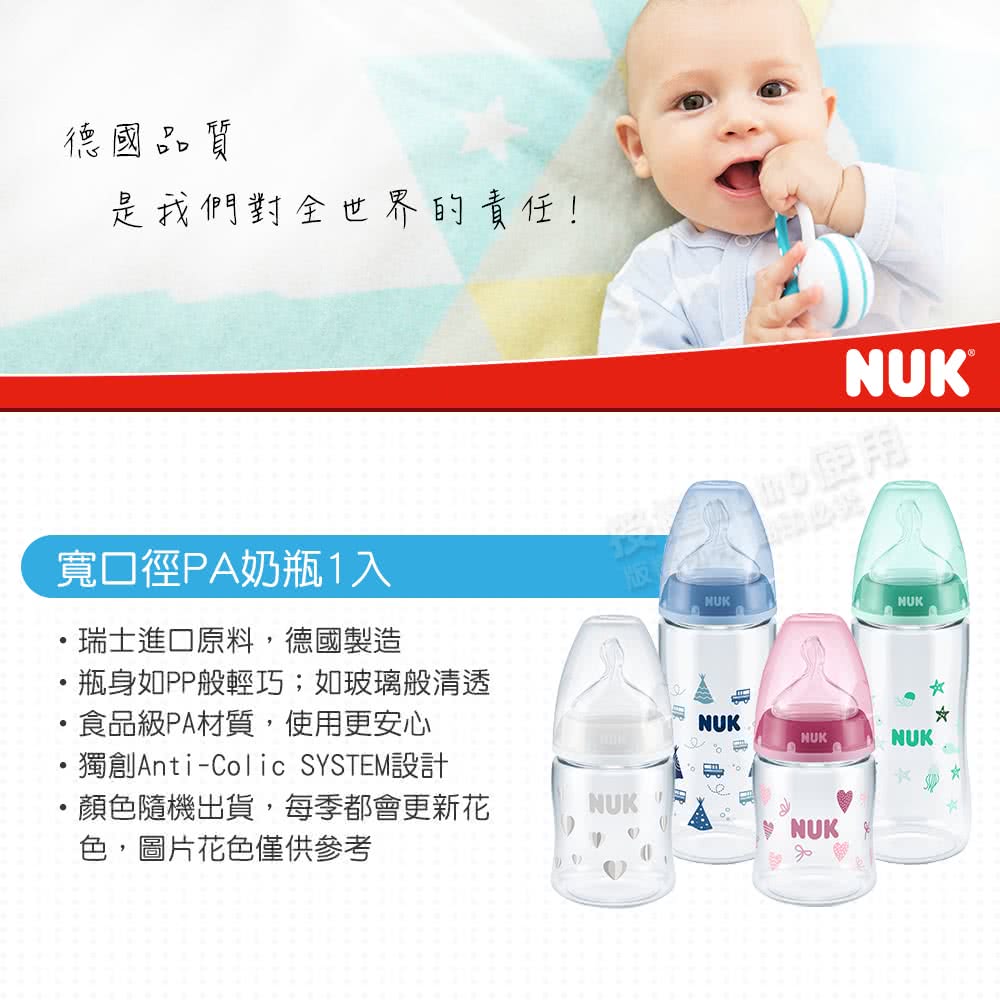雙11特惠活動,搶到賺到:【NUK】寬口徑PA奶瓶附300ml-附2號中圓洞矽膠奶嘴6m+(顏色隨機出貨)