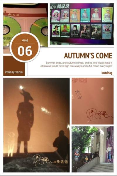 2014的初秋午後我再次來到開南的展覽會場,寂靜的空間裡我看見了一個熟悉的身影 ,來到會場裡細心的整理著茶几上的盆花,擦拭著每個角落裡的塵埃,感動的心情讓我又佇足了許久,直到電話鈴聲響起了 <溫暖> 的歌聲,孩子催促著我還有事要辦理,在我準備離去走出會場門口時,身後的門打開,鳳迷少菁走了出來,我又回頭微笑的看了她一下,頓時她開口問我說:你也是鳳迷嗎?我微微的輕輕回答:是的,在這些用心努力的資深鳳迷面前突然覺得自己好渺小。