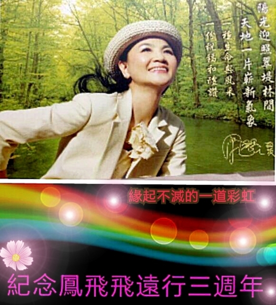 鳳姐遠行三週年,我還是沒有搭上彩虹專車的勇氣,這一夜讓思念伴著淚水直到天明,我想問鳳姐如果老天爺給您一次機會可以再唱一首歌,您會選哪首歌呢?是對親愛的孩子唱「心肝寶貝」、還是如2003年久別多年那「溫暖的秋天」、或是為精彩一生幽幽唱著「際遇」、也許是那首永遠沒辦法擦乾淚水的「掌聲響起」、也許您因為掛念彩虹兄弟姐妹們這三年來不曾間斷的思念和淚水,為我們唱著「我是一片雲」、「祝你幸福」、「愛不完的你」……,遙寄祝福與思念給彩虹彼端的您~幸福快樂,聽聽我們聲聲喚著~【鳳飛飛~我愛你】