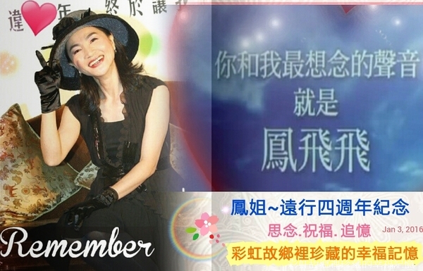 感謝溫馨的時節裡, 鳳姐的心肝寶貝和彩虹的兄弟姐妹們,傳遞著這樣溫暖純樸的正面能量, 感謝你們的默默付出,把思念珍藏心底,把鳳範源遠流長的傳下去,感受著鳳姐讓人溫暖感動的幸福能量,鳳飛飛一直都在,我們就是如此深愛著她,大聲說出 ~鳳飛飛 .我愛你,彷佛又聽見鳳姐在說 ~ 感謝您