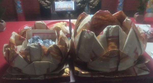 左為今下午冠軍師姐在小廟補燒的238對大原子彈,法船蓮為一半張數(120對),照片上方手機開善導寺三寶佛像。秦始皇被疫情關在家,透過電話我們3人共唸,秦的千軍萬馬過來保護,燒完再由秦軍送往善導寺,萬無一失。事實上現在每逢法會都是秦軍赴善導寺護衛,完全改善早先魔擾問題。我和秦定期會唸盤古誥來犒軍(支付薪水)