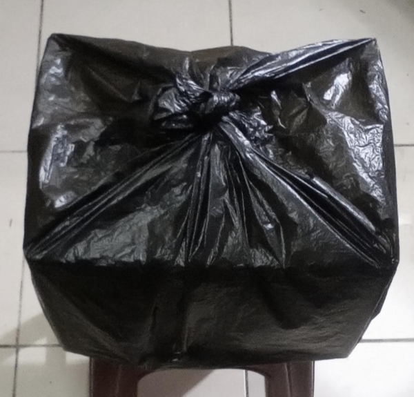 可先開善導寺,請老祖派兵保護摺原子彈,完成品用金光神咒塑膠袋裝往善導寺樓下法會現場,12點午休時,擺在唸經桌上加持,如下左圖,唸髻億山、玄妙、盤古、滅惡趣咒、[地藏王菩薩聖號+心咒](手印)+「南無地藏菩薩本願經(唸經題)」、觀音靈感真言。各唸3到5分鐘。大約半小時結束,跪唸就更強。然後仍用金光神咒塑膠袋裝起來,搭捷運到西門站,轉搭公車235到新莊國小站下車就是大眾廟。可以拿出來請地藏王菩薩再作加持,唸髻億山+[地藏聖號+心咒]+「南無地藏菩薩本願經」。擲茭OK後,就用最薄的塑膠袋(免金光神咒)包起來如右圖,拎到10號金舖請代燒。最好3點半前送到,因為4點整小貨車就要啟程載往專業焚化廠。